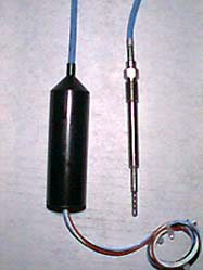 The pressure sensing diaphragm of the PSIglow is recessed from the glow plug tip so the maximum continuous temperature of the sensor package does not exceed 350° C. Pressure access is provided on the side of the glow plug stem in the form of a series of small holes, which provide an additional functionality of a flame arrester. The production version of the product has the sensor signal conditioner embedded into the glow plug body outside of the high temperature zone and connects electrically to the ECU (Electronic Control Unit). Unlike the PSIjet, which is restricted to direct injection engine applications, the PSIglow can be used with both indirect and direct injection engines. Fig. 6 shows a photograph of the current PSIjet version with a separate signal conditioner.